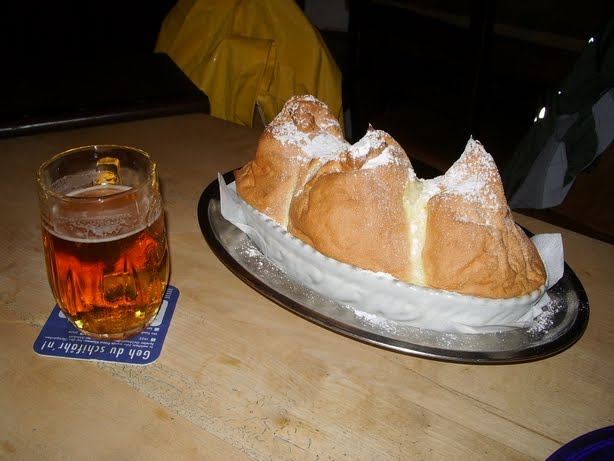 Having had a large lunch we weren’t looking for much of a supper. About half of the group went next door to a restaurant, a few decided to skip entirely, and a few ventured out into the rain with Mary Ann to walk to her special place for her Salzburger Nockerl. We were pretty wet when we got there and each had a dessert. Mary Ann had taken another route because she wanted to investigate something and her dish took twenty minutes to prepare, so we ordered for her when we arrived. The waiter tried to talk us out of it. He said that it is for at least two people, as it said on the menu. We assured him that Mary Ann could handle it. As we waited, we noticed two tables of four that each split one. But Mary Ann was up to the challenge. It helped that she did not eat a meal first.
