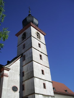 We next went on to Burstadt, about half way to Frankfurt. Miles has traced his family back to here. He did not expect to find anything in the cemetery, and he was right, but we took a few pictures there and at the church. This church was built in 1732. I think that is the oldest one we have seen in a village on our three trips. Of course, some of the big churches in the cities are much older.